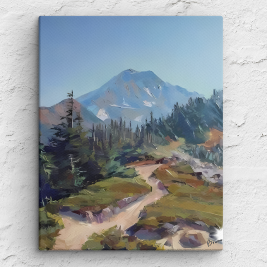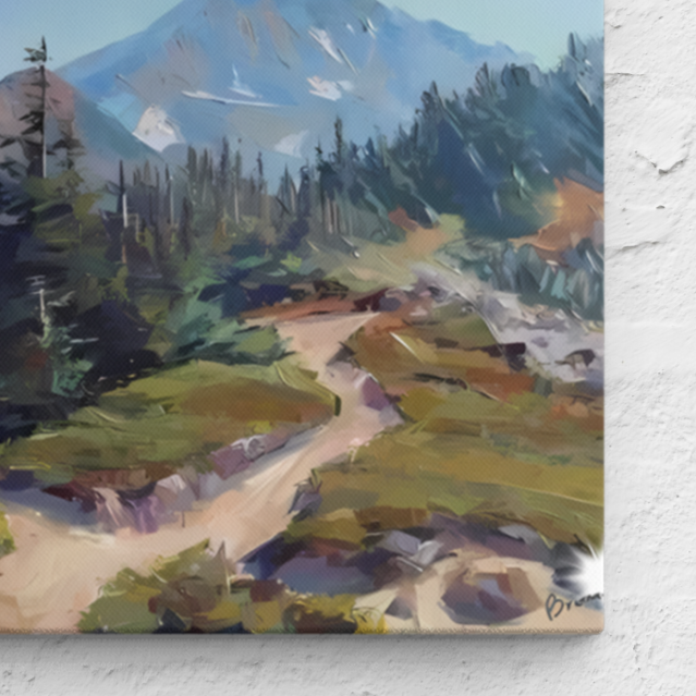 Painted on canvas stretched over a wooden frame backing for sturdiness and easy display.