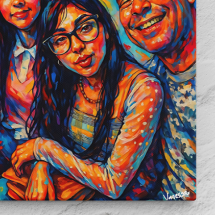 Painted on canvas stretched over a wooden frame backing for sturdiness and easy display.